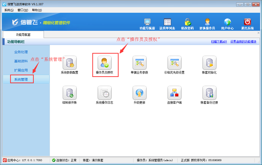 進銷存管理軟件、倉庫管理軟件、出納記賬軟件、送貨單軟件等都支持設置多個操作員登錄軟件,本文以送貨單軟件為例演示一下如何新增操作員賬號并設置操作員權限?