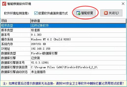 在軟件應用中心程序中,點擊“系統參數”->“數據庫參數”打開數據庫參數配置界面,然后點擊“智能修復軟件環境”按鈕打開智能修復軟件環境界面智能修復軟件環境即可,如下圖所示(或者在軟件應用中心程序中點菜單“工具”->“智能修復軟件環境”同樣可以打開智能修復軟件環境界面智能修復軟件環境)。