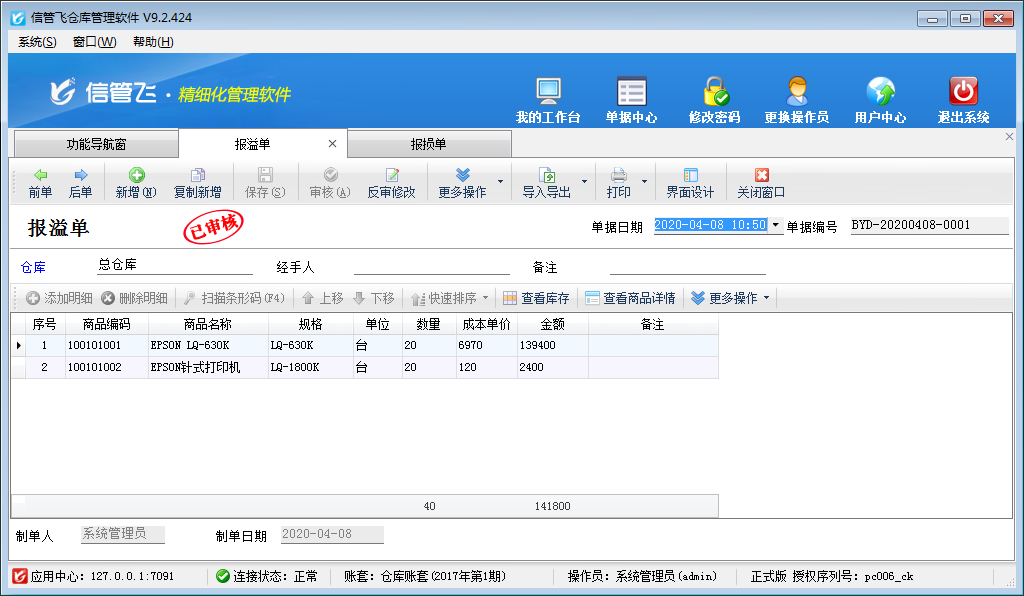 信管飛RMS、信管飛倉庫管理軟件都支持使用報溢單、報損單進行庫存數(shù)量調(diào)整,下面我們以倉庫管理軟件為例來演示一下具體的操作步驟。