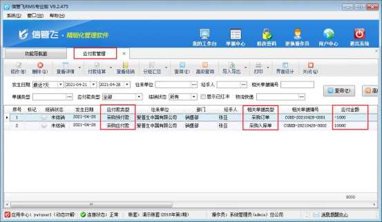 歡迎下載試用采購預付款可沖抵采購應付款的進銷存軟件:信管飛RMS軟件
