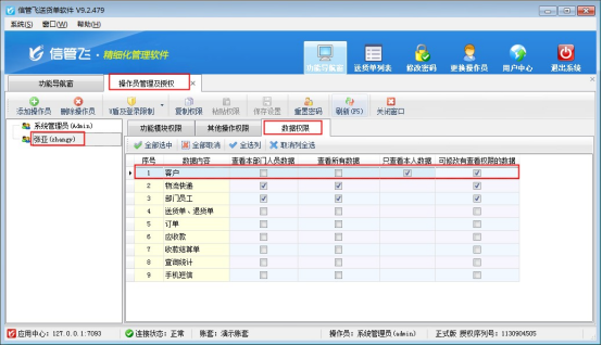 信管飛送貨單軟件、信管飛RMS軟件等都支持增加可登錄的操作員以及設置操作員的權限,有客戶需要操作員僅能對自己的客戶進行開單操作,無其他操作權限,這種應該如何控制?文本以“信管飛送貨單軟件”為例進行示范下。