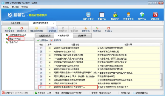 歡迎下載試用可控制操作員修改經手人及業務員權限的軟件:信管飛RMS軟件