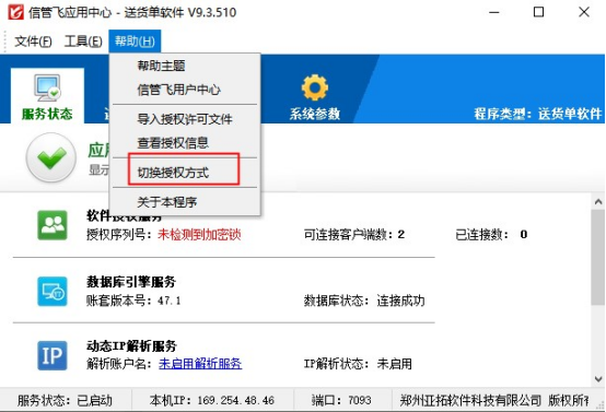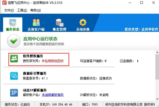 加密鎖設備如果長時間使用可能有損壞情況,目前我們支持加密鎖授權更換為授權形式授權,授權目前免費更換。本文以“信管飛送貨單軟件”為例,示范下如何變更授權形式?