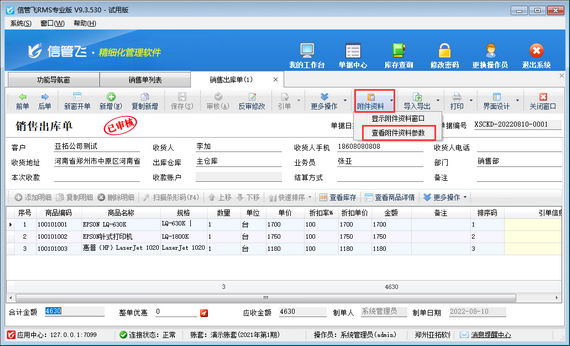 信管飛RMS軟件是進(jìn)銷存一體化的軟件,支持開單上傳附件資料管理單據(jù)附件,本篇文章以信管飛RMS專業(yè)版為例介紹一下如何設(shè)置打開銷售出庫(kù)單可直接查看附件資料窗口?