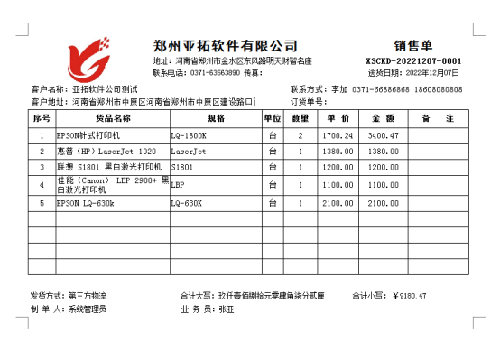 亞拓軟件旗下的信管飛送貨單軟件、信管飛RMS軟件、信管飛倉庫管理軟件,都支持開單打印單據(jù),軟件中內(nèi)置了十幾種打印模板供客戶選擇使用,也支持自定義設(shè)計打印模板,軟件內(nèi)置打印模板設(shè)置自動增加空行,根據(jù)客戶需要模板不顯示空白行,我們以送貨單軟件為例設(shè)置下打印模板根據(jù)單據(jù)明細(xì)顯示打印行數(shù)。未調(diào)整前打印預(yù)覽顯示如下圖: