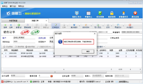 客戶銷售訂單有預收定金,收款賬戶需要修改,但是修改提示當前預付款已結銷不能修改,該如何操作?如下圖所示,本文示范下操作步驟。