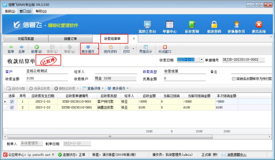 修改完成后,在應收款管理中需要重新選擇未結銷的記錄進行收款結算,收款結算單日期可修改為原來的結算日期。