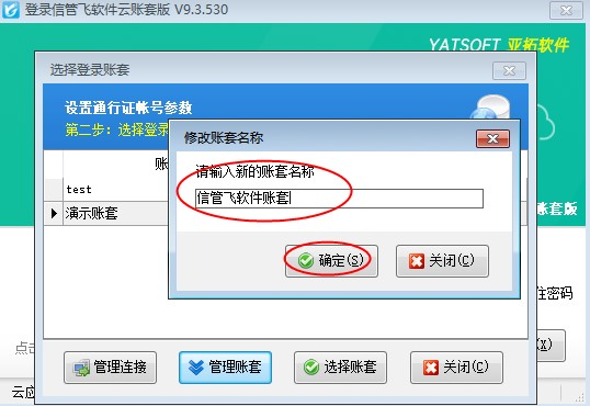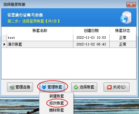 修改確定后點(diǎn)擊選擇賬套,可看到登錄界面顯示的賬套名稱為修改后的賬套名稱,如下圖所示: