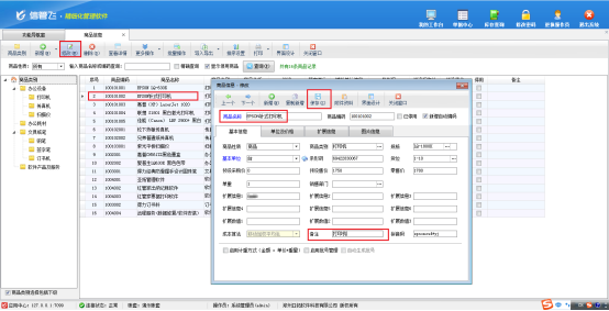 在功能導航窗點“基礎資料”—》“商品信息”即可進入“商品信息”界面,修改商品信息如圖所示,輸入備注信息的內容進行保存。