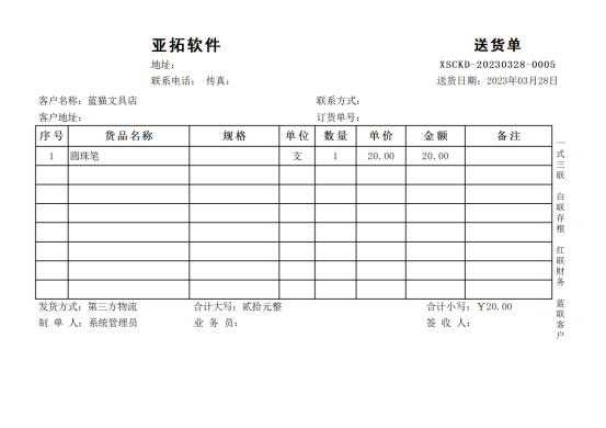 信管飛送貨單軟件、信管飛RMS軟件、信管飛倉庫管理軟件,都支持開單打印單據(jù),軟件中內(nèi)置了十幾種打印模板供客戶選擇使用,也支持自定義設(shè)計(jì)打印模板,有客戶打印時(shí)需要行數(shù)是固定的,我們以送貨單軟件為例設(shè)置下如何固定打印行數(shù)?