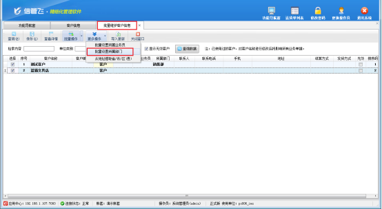 信管飛RMS、信管飛倉庫管理軟件、信管飛送貨單軟件等都支持批量維護(hù)客戶信息,可批量維護(hù)客戶信息的名稱、聯(lián)系人、電話、地址等信息。同時也支持批量維護(hù)客戶所屬部門,本篇文章以送貨單軟件為例介紹一下如何批量設(shè)置客戶所屬部門?
