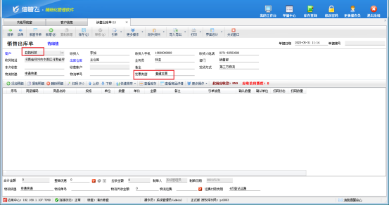 設(shè)置完成之后,導(dǎo)航欄點(diǎn)擊“銷(xiāo)售管理”,打開(kāi)銷(xiāo)售出庫(kù)單界面,選擇相關(guān)客戶(hù)之后,可以看到客戶(hù)信息里面設(shè)置的默認(rèn)發(fā)票類(lèi)型已經(jīng)自動(dòng)調(diào)取出來(lái)了,如圖所示: