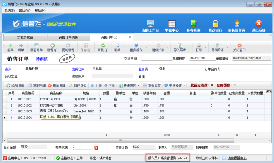 在功能導(dǎo)航欄點(diǎn)擊銷售管理,新增銷售訂單后,使用操作員“張亞”登錄軟件,點(diǎn)擊消息提醒中心,業(yè)務(wù)提醒,接收到一條新增訂單單據(jù)消息,如圖所示:
