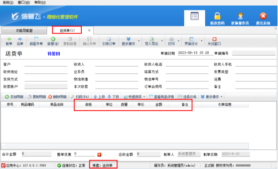 登錄新賬套“送貨單”,打開新開送貨單界面,送貨單默認界面如下圖所示: