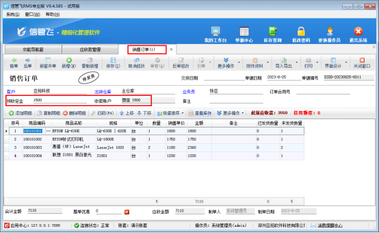 方式一:軟件不需要體現退款記錄,可直接打開銷售訂單修改預收定金金額為1500元,如下圖所示: