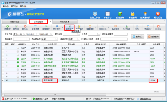 信管飛RMS軟件是集采購管理、銷售管理、倉庫管理、往來應收應付款管理為一體的軟件,軟件支持登記客戶預付款,客戶下單前可先支付定金,有用戶咨詢上月的預付款還未結銷需要退回一部分,軟件中該如何操作?本文以信管飛RMS軟件為例進行示范下。
