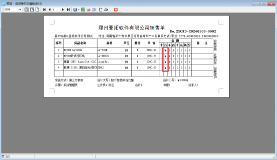 點擊保存打印模板,預覽打印樣式: