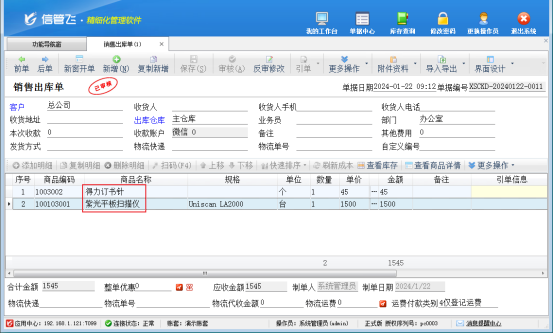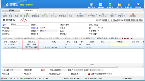 在功能導航窗點“銷售管理”—》“銷售出庫單”即可進入“銷售出庫單”界面,系統(tǒng)默認的單據內容是居左顯示的。