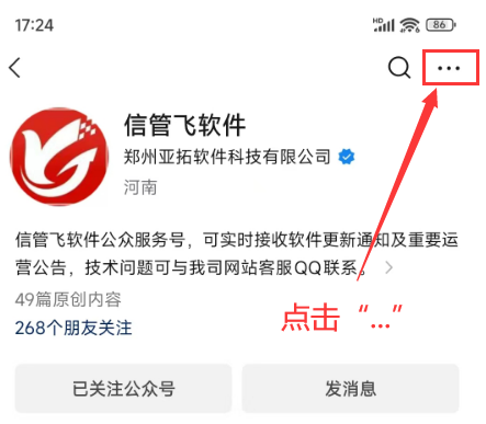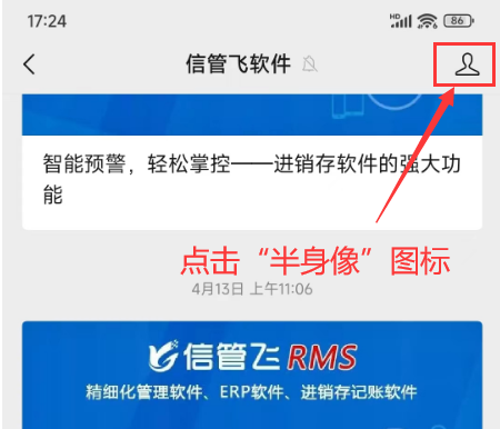 打開“信管飛軟件”公眾號,然后在右上角找到“半身像”名片標(biāo)識,如下圖: