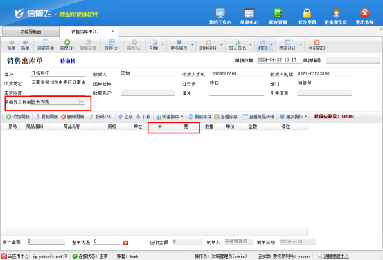 示例:含長和寬、不含兩種控制項目,在開單界面選擇不同的項目,界面根據顯示配置進行顯示,如下圖所示: