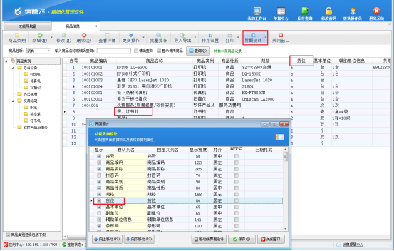 商品信息界面點界面設計,可以把貨位顯示出來,方便快速查看。