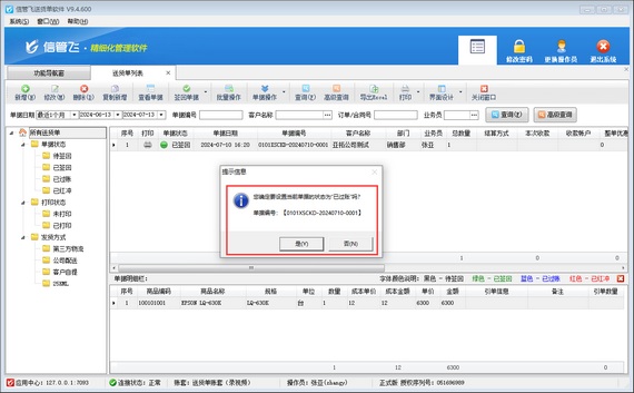 權(quán)限設(shè)置完成后,使用操作員賬號(hào)重新登陸軟件,重新過賬送貨單,即可過賬成功,如下圖所示。