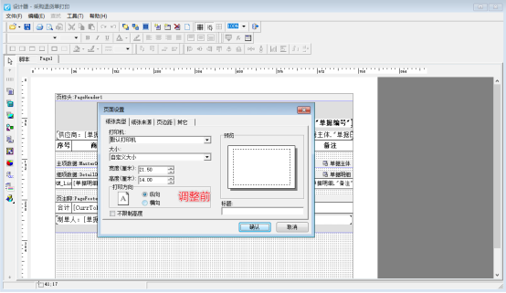 在打印模板設計器界面,點擊左上角文件下頁面設置,頁面設置取消縱向按鈕,勾選橫向;縱向寬度調整為橫向寬度,縱向高度調整為橫向高度,然后確認設置保存打印模板,重新打印紙張內容即可顯示全部。