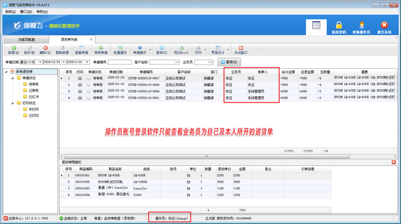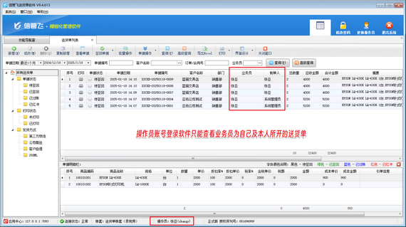 在信管飛送貨單軟件中每個(gè)操作員都擁有獨(dú)立的數(shù)據(jù)視圖,他們只能查看和操作自己錄入或與自己相關(guān)的送貨單、退貨單數(shù)據(jù),無法訪問其他操作員的數(shù)據(jù)。