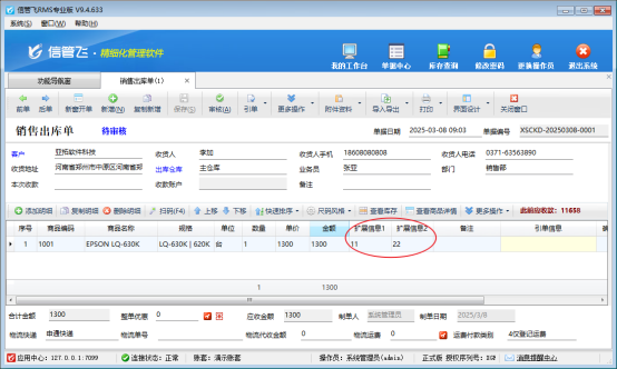 示例:擴展信息1=11、擴展信息2=22,擴展信息直接相加時計算公式:[[[單據明細."擴展信息1"]+[單據明細."擴展信息2"]]],顯示結果為1122,是字符串相連。