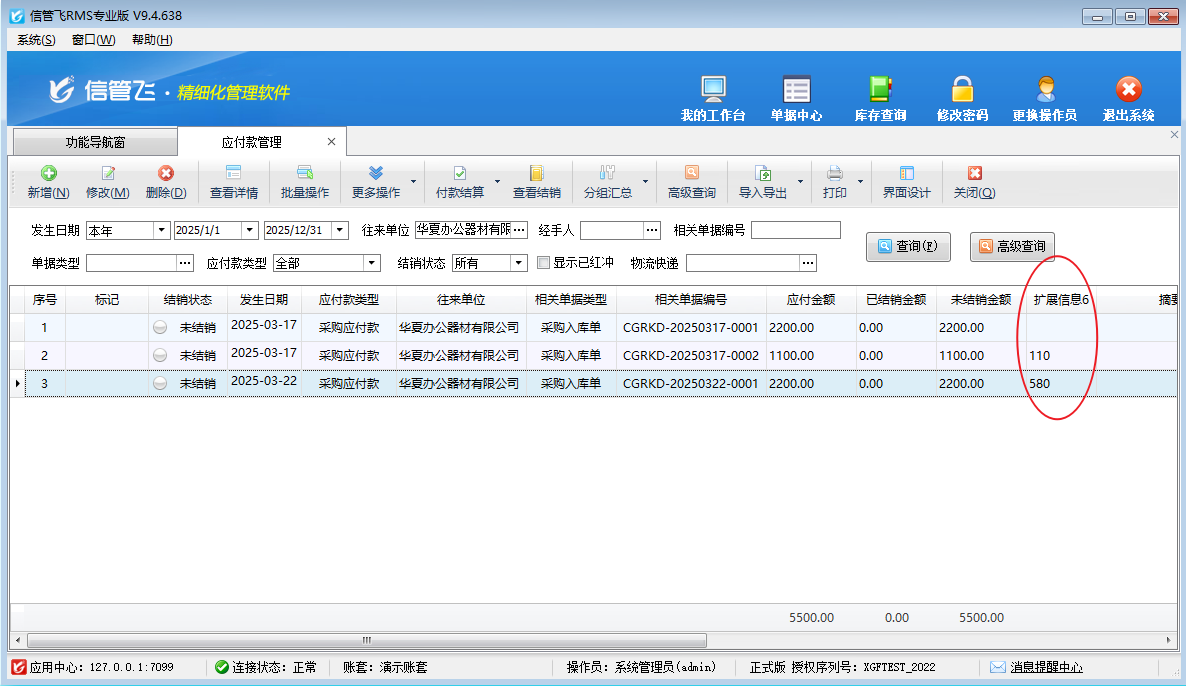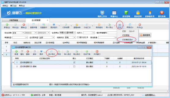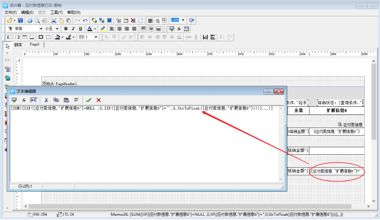 在應(yīng)付款管理界面點擊打印---打印格式設(shè)計,選中模板點擊設(shè)計格式;進(jìn)入模板設(shè)計器,雙擊擴展信息6對應(yīng)合計的文本框,輸入計算公式:[SUM([IIF([應(yīng)付款信息."擴展信息6"]=NULL,0,IIF([應(yīng)付款信息."擴展信息6"]='',0,StrToFloat([應(yīng)付款信息."擴展信息6"])))],,,)]