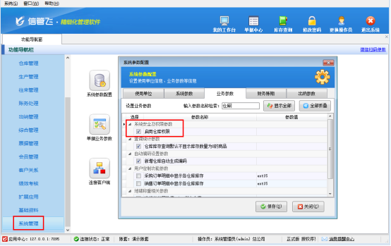 信管飛RMS支持“倉庫權(quán)限”功能,管理員只需在“系統(tǒng)參數(shù)配置”中勾選“啟用倉庫權(quán)限”,即可開啟分級(jí)管理模式。該功能簡(jiǎn)單易用,無需復(fù)雜操作,輕松滿足企業(yè)對(duì)多倉庫、多人員協(xié)同管理的核心需求。