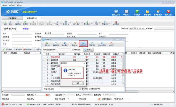 完成參數(shù)配置后,在銷售管理環(huán)節(jié),當(dāng)新開銷售出庫單時(shí),在選擇客戶界面,企業(yè)人員就能清晰看到當(dāng)前客戶的應(yīng)收款情況,有助于及時(shí)把控銷售款項(xiàng)的回收。