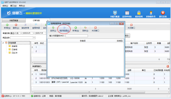 訂單列表界面,雙擊標記備注項,點擊維護標記備注內(nèi)容,進入選擇數(shù)據(jù)字典(標記內(nèi)容)界面,點擊維護數(shù)據(jù)可進入標記內(nèi)容維護。