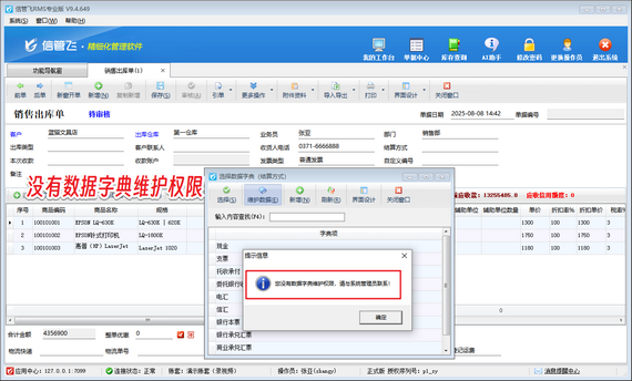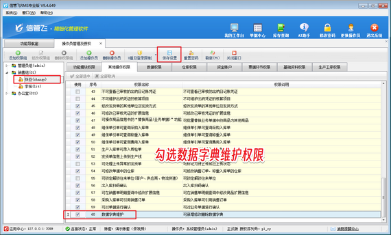歡迎下載試用這款支持設(shè)置操作員數(shù)據(jù)字典維護(hù)權(quán)限的進(jìn)銷存軟件:信管飛RMS。