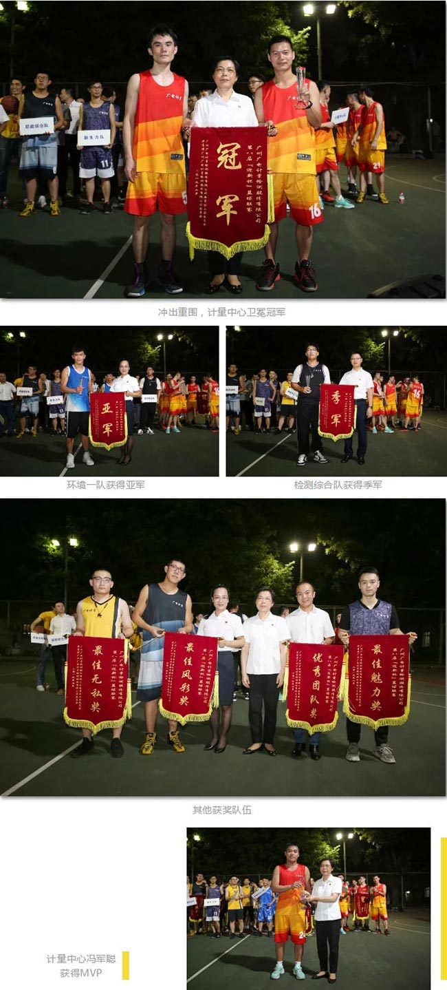 從聯(lián)賽啟動到9月11日,歷經(jīng)21場激烈角逐,第八屆“迎新杯”籃球聯(lián)賽圓滿落幕。其中計量中心隊、環(huán)境可靠性一隊、檢測綜合隊奪得團(tuán)體冠、亞、季軍;質(zhì)量學(xué)院綜合隊、職能綜合隊、環(huán)境中心二隊、新生力隊分別獲得優(yōu)秀團(tuán)隊獎、最佳風(fēng)采獎、最佳無私獎和最佳魅力獎。同時,計量中心隊馮軍聰獲得本屆聯(lián)賽MVP。