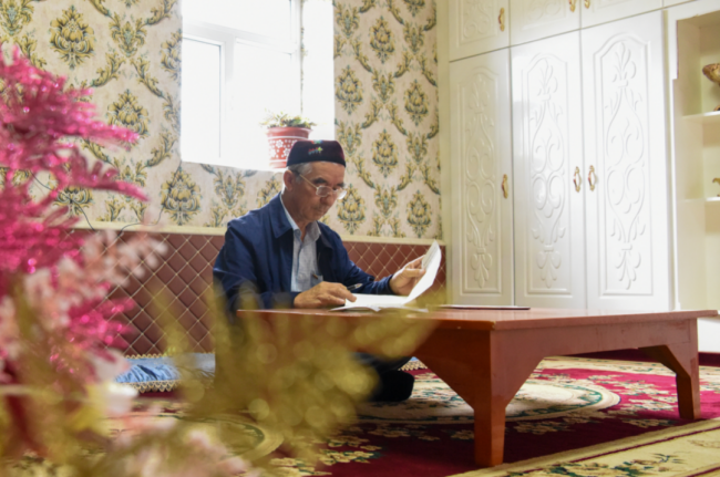 在新疆伊寧縣溫亞爾鎮(zhèn)布力開村,買買提江·吾買爾在家學(xué)習(xí)。丁磊攝(新華社)