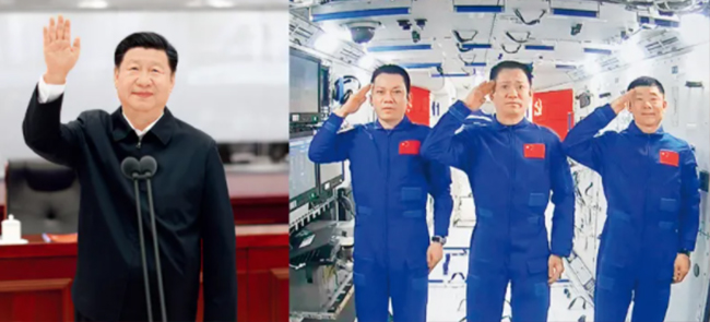 2021年6月23日,中共中央總書記、國家主席、中央軍委主席習(xí)近平來到北京航天飛行控制中心,同正在天和核心艙執(zhí)行任務(wù)的神舟十二號航天員聶海勝、劉伯明、湯洪波親切通話。 新華社記者 鞠鵬(左圖)、岳月偉(右圖)/攝(拼版照片)