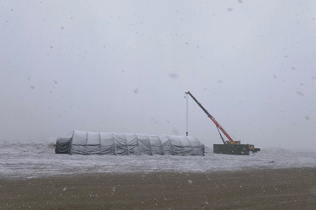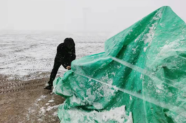 團隊頂著風雪作業