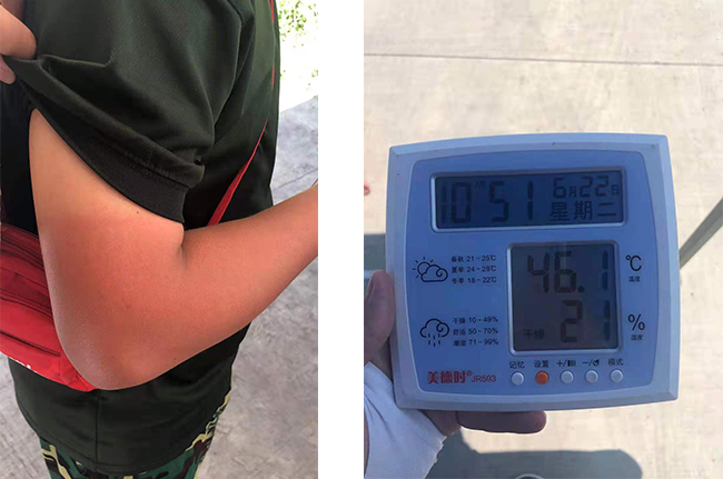戶外比測試驗(yàn)現(xiàn)場的天氣變幻莫測,前一刻還是46℃的烈日暴曬,下一刻已是傾盆大雨。由于測試現(xiàn)場的工棚是臨時(shí)搭建的簡易棚,狂風(fēng)大雨易造成雨棚積水漏雨或者被掀翻,不僅打亂試驗(yàn)計(jì)劃,還容易造成危險(xiǎn),這又給攻關(guān)組增加了一個(gè)難題。黨員吳展金同志心系同事安全,帶頭冒雨加固工棚雨布,扛起水泥袋筑起“防護(hù)墻”防止雨水灌注。