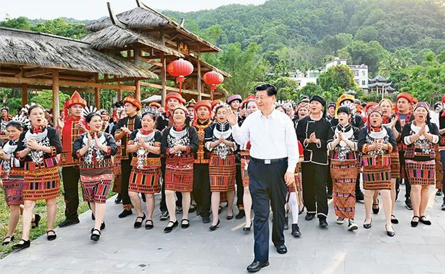 2022年4月10日至13日,中共中央總書記、國家主席、中央軍委主席習近平在海南考察。這是11日下午,習近平在五指山市水滿鄉毛納村向村民們揮手致意。 新華社記者 李學仁/攝