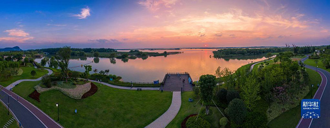 碧水蜿蜒,綠帶交織。長江之畔的安徽馬鞍山薛家洼生態園,如今是當地群眾親江親水親綠的城市生態客廳。