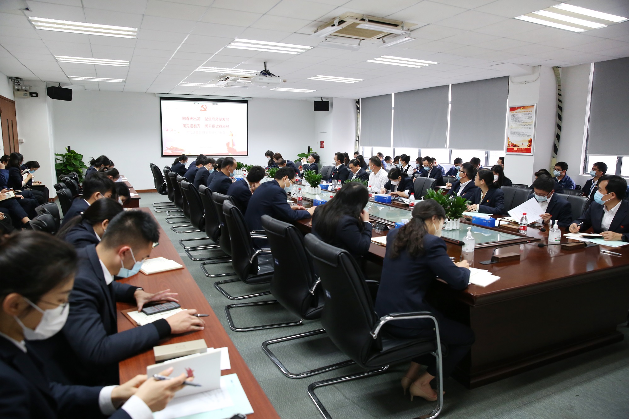 為深入學習貫徹黨的二十大精神及習近平總書記關于高質(zhì)量發(fā)展、國資國企工作的重要論述,進一步引導黨員領導干部錨定高質(zhì)量發(fā)展首要任務,圍繞公司年度經(jīng)營主題,堅定扛起公司發(fā)展勇挑大梁的政治責任,2月14日,廣電計量黨委組織開展“向春天出發(fā),聚焦高質(zhì)量發(fā)展;向先進看齊,勇開提效益新局”主題黨日學習教育。廣電計量31個黨支部黨員和入黨積極分子共500余人,分別在廣州總部多個會場以及子公司分會場,通過現(xiàn)場參會、視頻參會的方式參加此次學習教育。